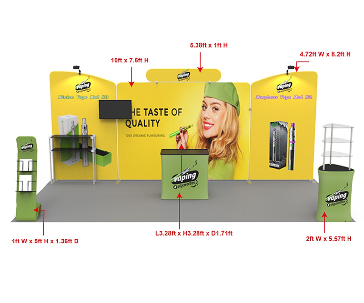 - 4.72 x 8.2ft Straight aluminum Snap-tube slope top back wall frame w/dye sublimation printed fabric cover x 2