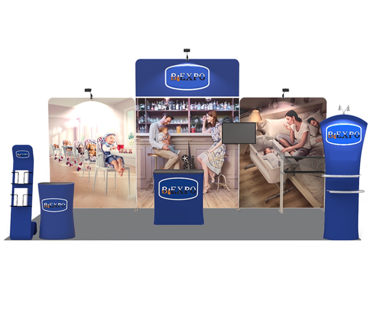 - 6.40 x 10ft straight aluminum snap-tube back wall w/single side prints